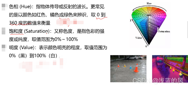颜色空间用于描述色彩,常见的颜色空间:RGB、CMYK、YUV、L*a*b*、HSL、HSV等
