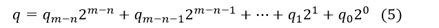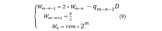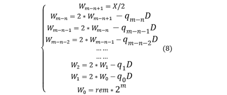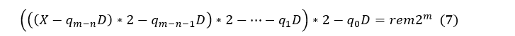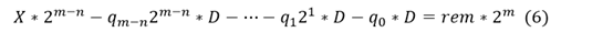 所以经过预移位后,实际的除法相当与X*2^(m-n)/D,得到的商q为m-n+1位,表示如下