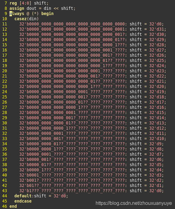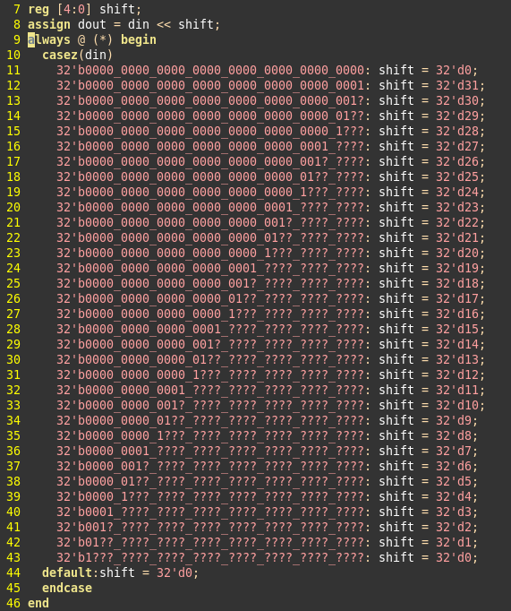 另一种最直接的办法为枚举法,通过casez…endcase语句,把一切交给综合器。