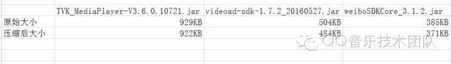 通过观察apk包会发现,assets目录下会存在一些新生成的图片目录,包括common、drawable、images、Recommend目录,通过分析发现,这些png图片来自项目引用的第三方jar包,其中TVK_MediaPlayer-V3.6.0.10721.jar会产生common、Recommend目录,videoad-sdk-1.7.2-20160527.jar会产生images目录,weiboSDKCore_3.1.2.jar会产生drawable相关目录。可以知道,这部分图片的优化空间有限,重点需要对TVK_MediaPlayer、videoad-sdk、weiboSDKCore三个jar包手动进行PNG图片压缩。总共可以减少41KB。