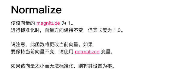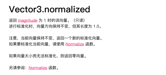 Unity 把向量归一化的normalized和Normalized官方解释: