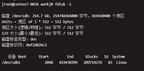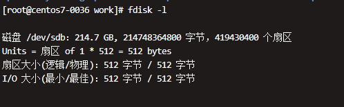 查看硬盘 fdisk -l , /dev/sdb为新加硬盘