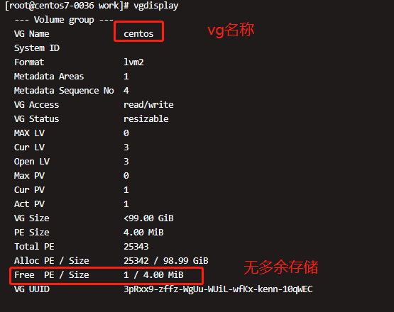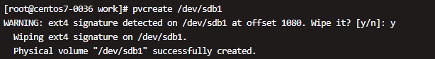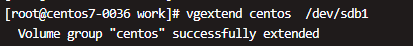 VG扩容,vgextend centos /dev/sdb1 ,将/dev/sdb1 的空间加到centos这个vg下
