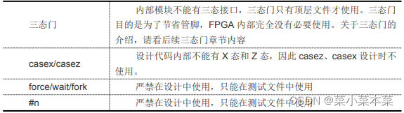 Verilog是描述硬件电路的,建立在硬件电路的基础上,有些语法结构是以仿真测试为目的,不能与实际硬件电路对应起来。使用这些语法的时候,将一个语法描述的程序映射成实际硬件电路中的结构是不能实现的——不可综合语法