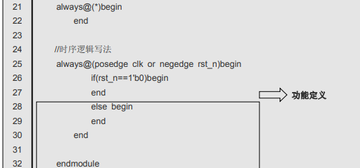 模块结构——端口定义、参数定义、I/O说明、内部信号声明、功能定义