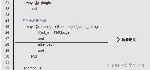 时序逻辑一般有:同步复位的时序逻辑、异步复位的时序逻辑。同步复位中复位不是立即有效,而是在时钟上升沿时复位才有效。代码结构: