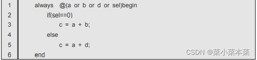 当敏感信号很多时,“*”代替,*表示程序语句中所有的条件信号,a b d sel
