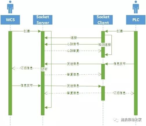 PLC和WMS/WCS之间由以太网(无线)连接,通过TCP/IP协议交换信息数据,二者之间主要由两类数据的交互:
