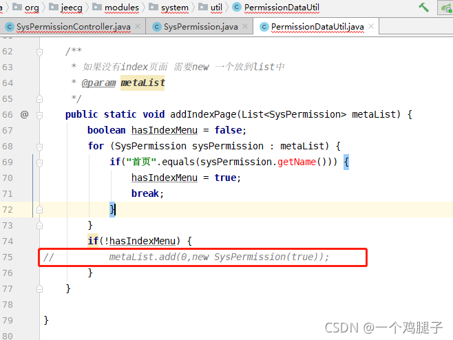 问题已解决,SysPermissionController文件中将红框起来的部分注掉,加上绿框部分的代码: