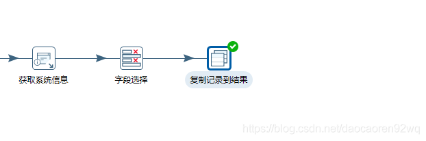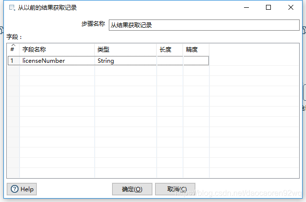 在上面这张图中我只填写了一个字段,我本来以为第二个转换中只会使用第一个转换传递过来的licenseNumber字段,但是后面执行过程中发现第一个转换中所有的记录在第二个转换中都能取到,这意味着这两个转换中不能有重复的字段名,如果有的话就会采用第一个转换中的数据,因此我在第一个转换的最后一步之前增加了“字段选择”组件,移除了licenseNumber以外的全部字段,这样能够保证传递过去的只有一个字段。