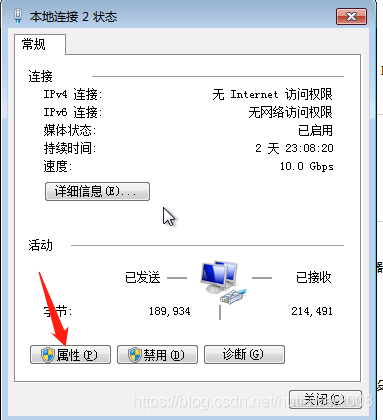 配置两业务机,网络连接中本地连接。点击属性按钮。