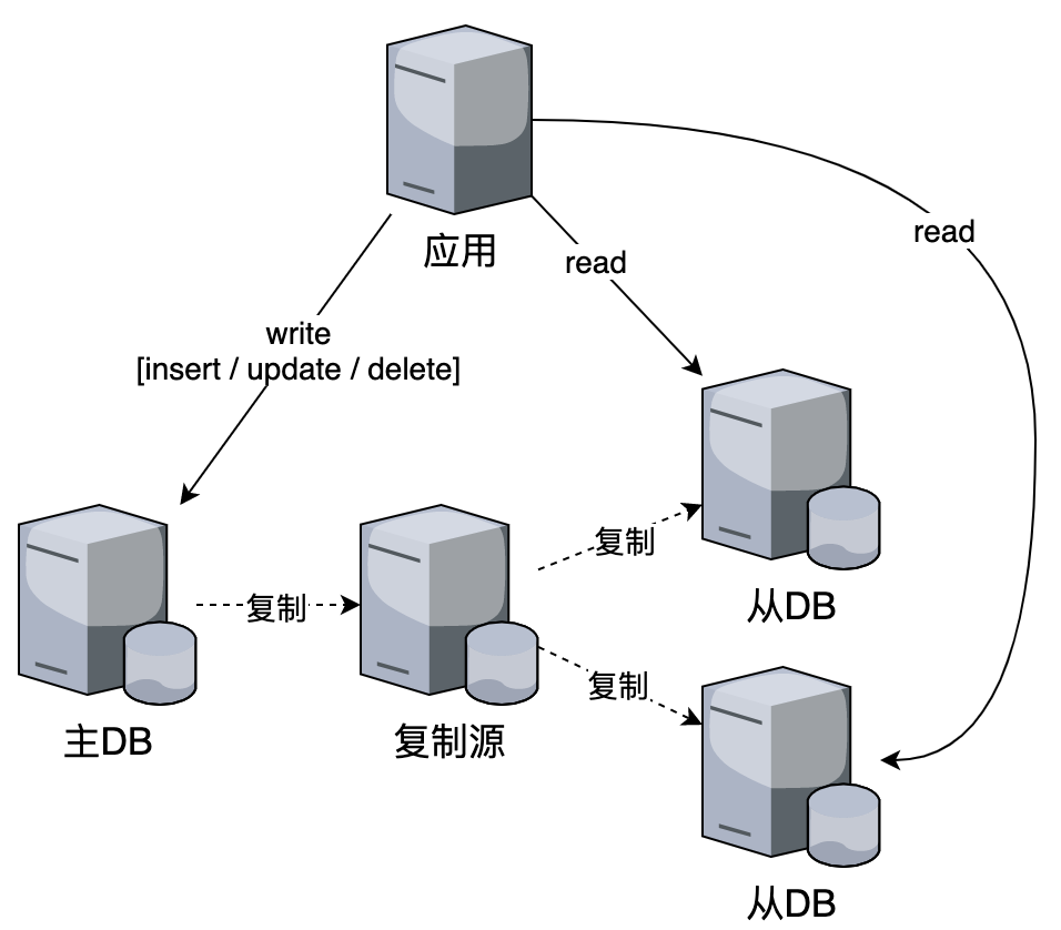 读写分离的核心是把读/写操作路由的不同实例上,实例之间要的数据要保障一致(通过复制实现),路由可以自己识别 Insert/Update/Delete/Selete 做路由,也可以使用代理(mysql proxy)或中间件。