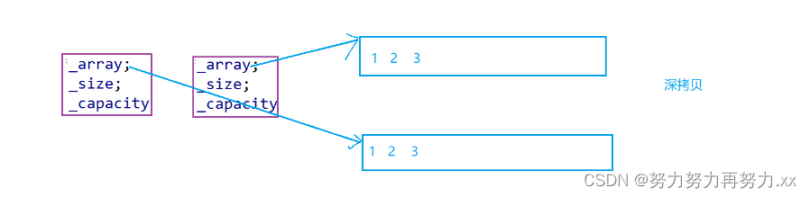 由于 Stack 类需要使用编译器自动生成的赋值重载,而自动生成的赋值重载是浅拷贝,直接复制。所以 ,s2=s1 执行完之后,s2 和 s1 的指针会指向同一块空间,导致错误。