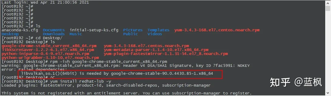3. libvulkan.so.1 错误:依赖检测失败:libvulkan.so.1()(64bit) 被 google-chrome-stable-85.0.4183.83-1.x86_64 需要