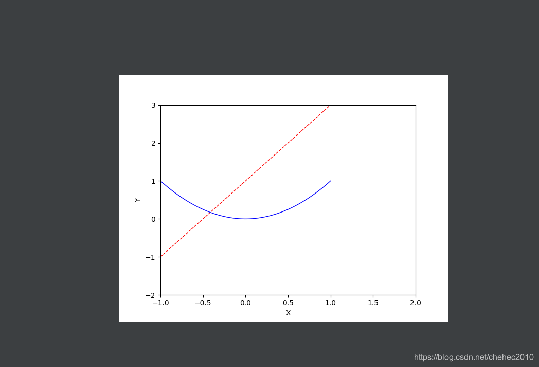 #绘制x和y的函数,颜色是红色,线的宽度是1,linestyle="--"表示实线