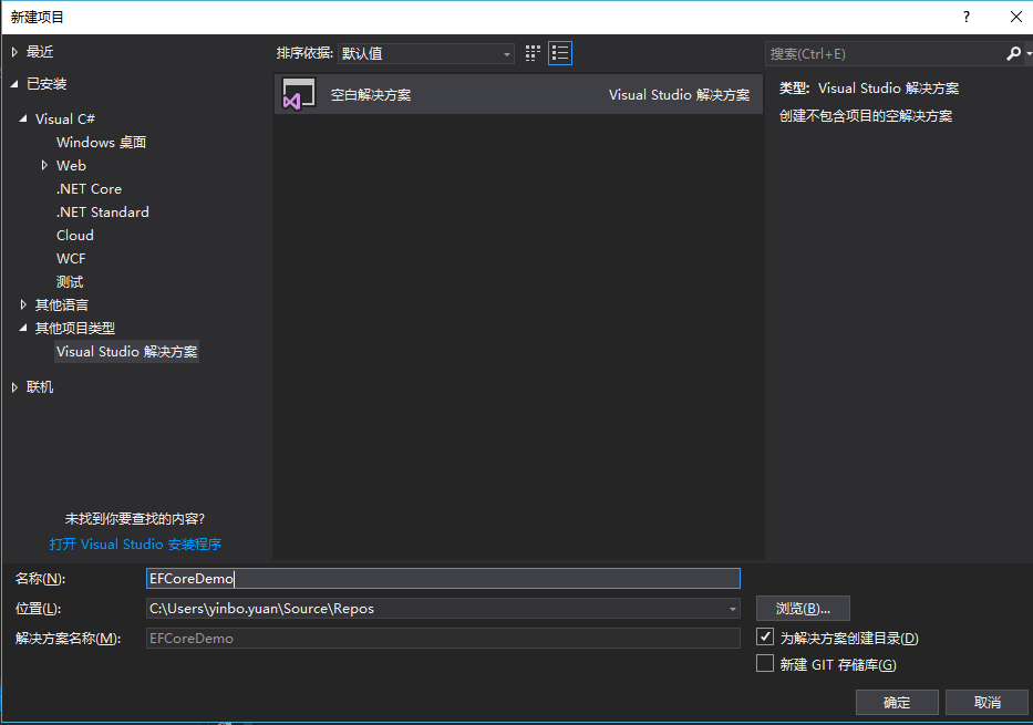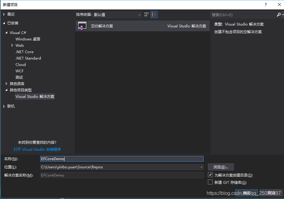 1.首先新建一个空白解决方案EFCoreDemo