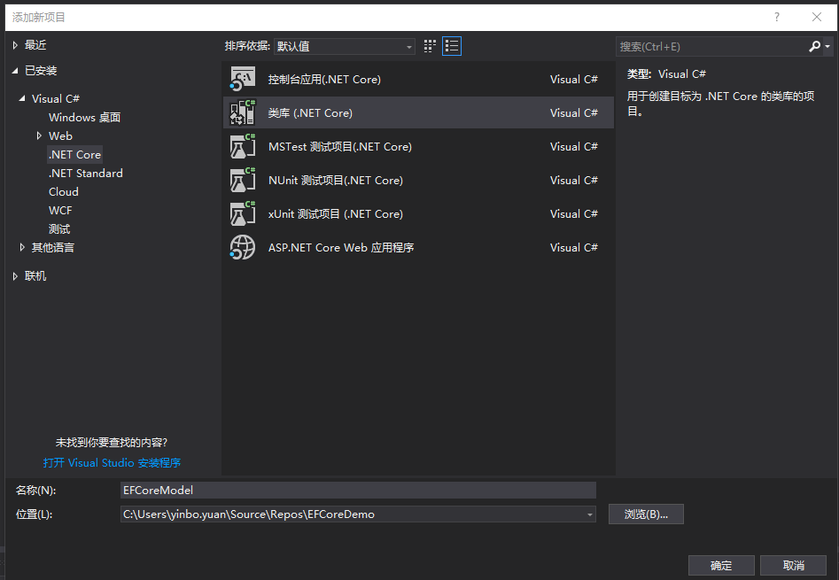 2.创建一个类库EFCoreModel