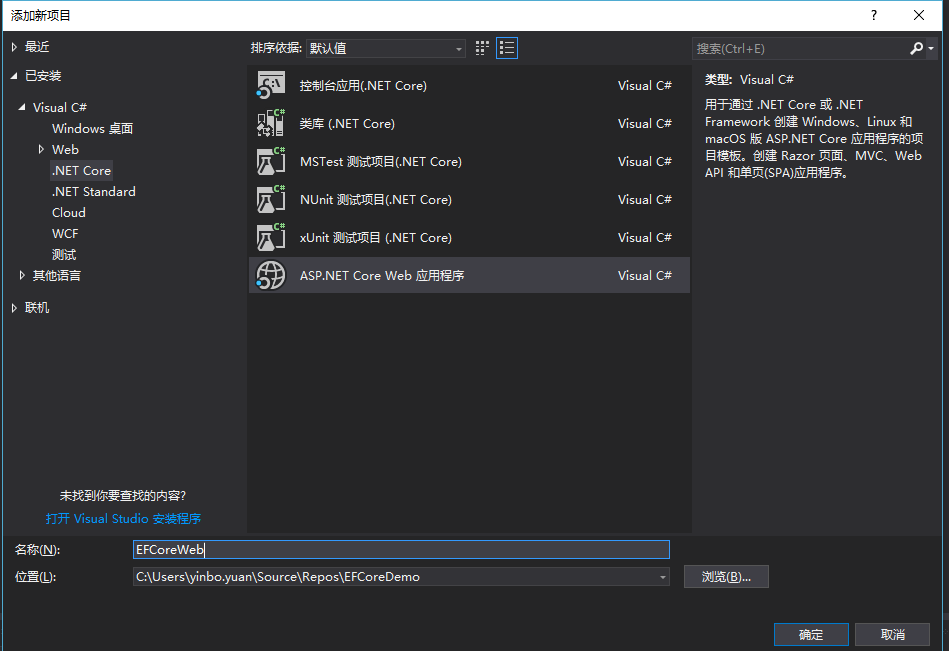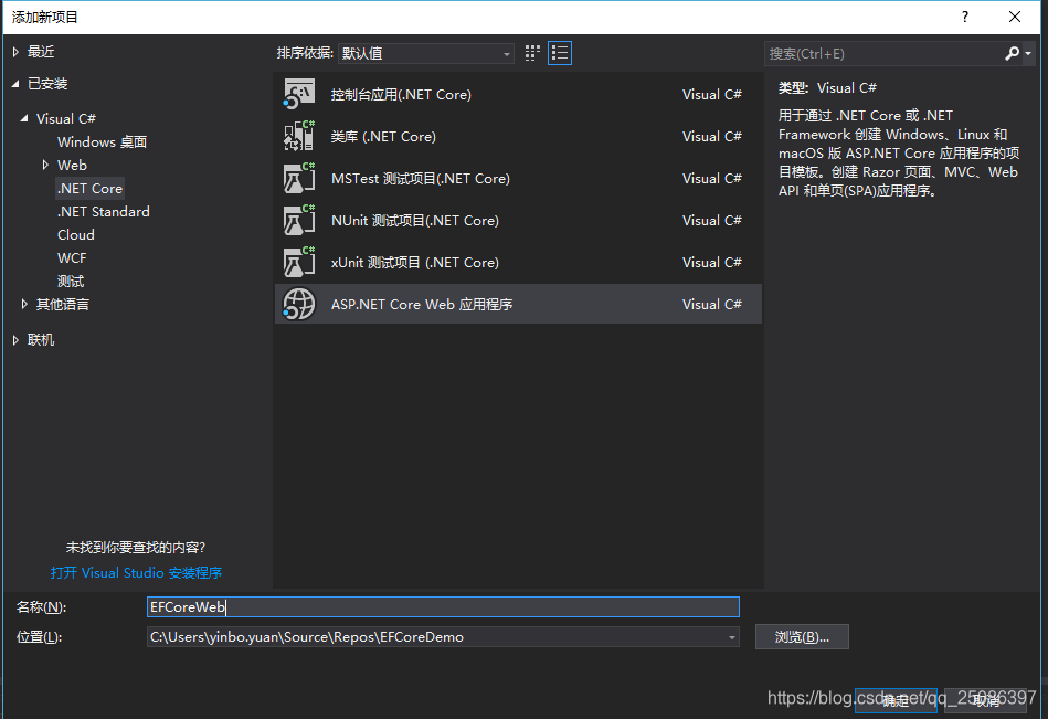 3.创建一个ASP.NET Core Web 应用EFCoreWeb