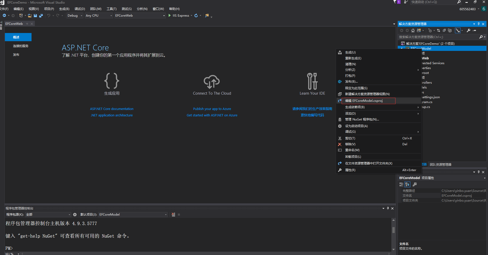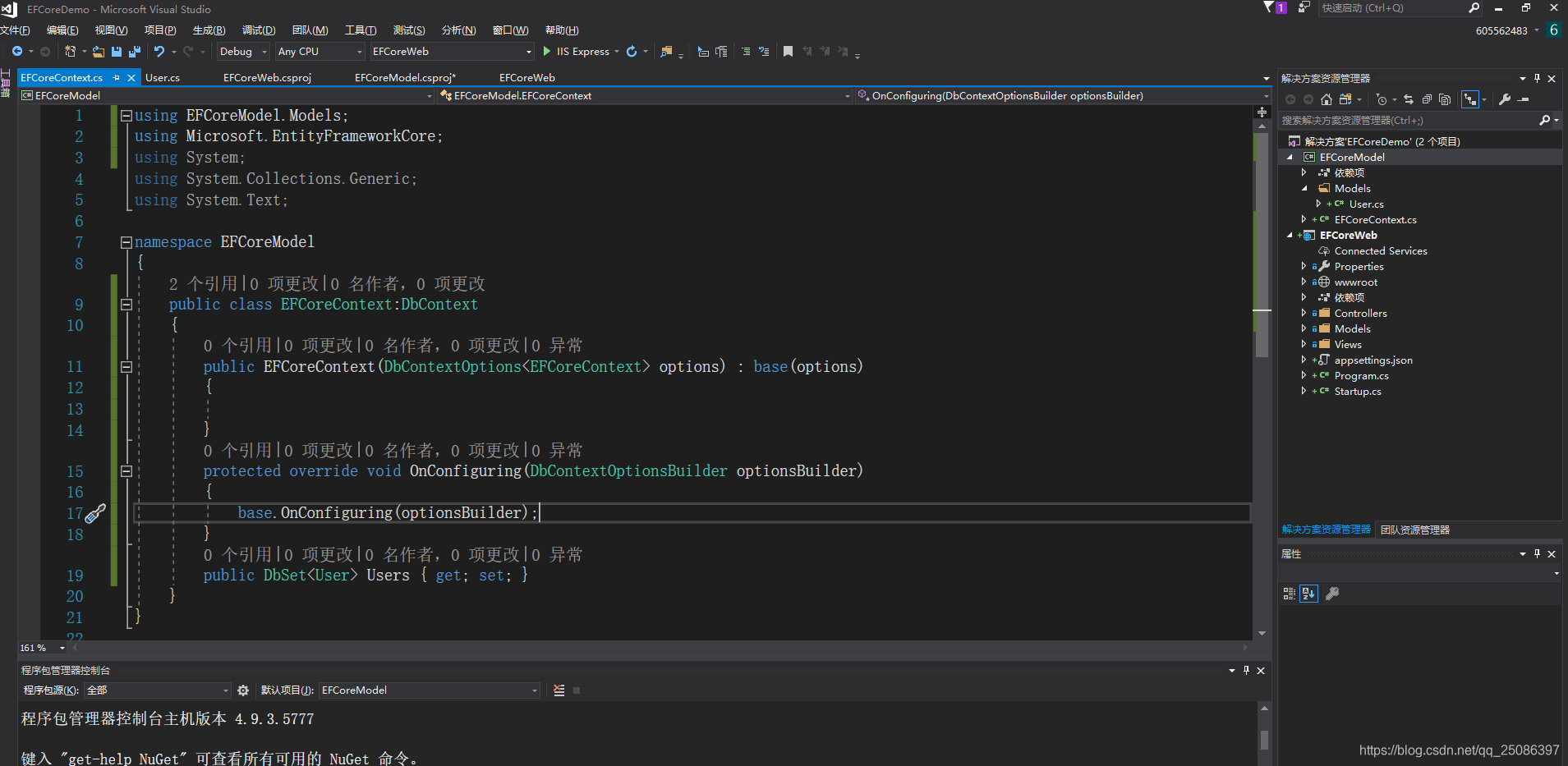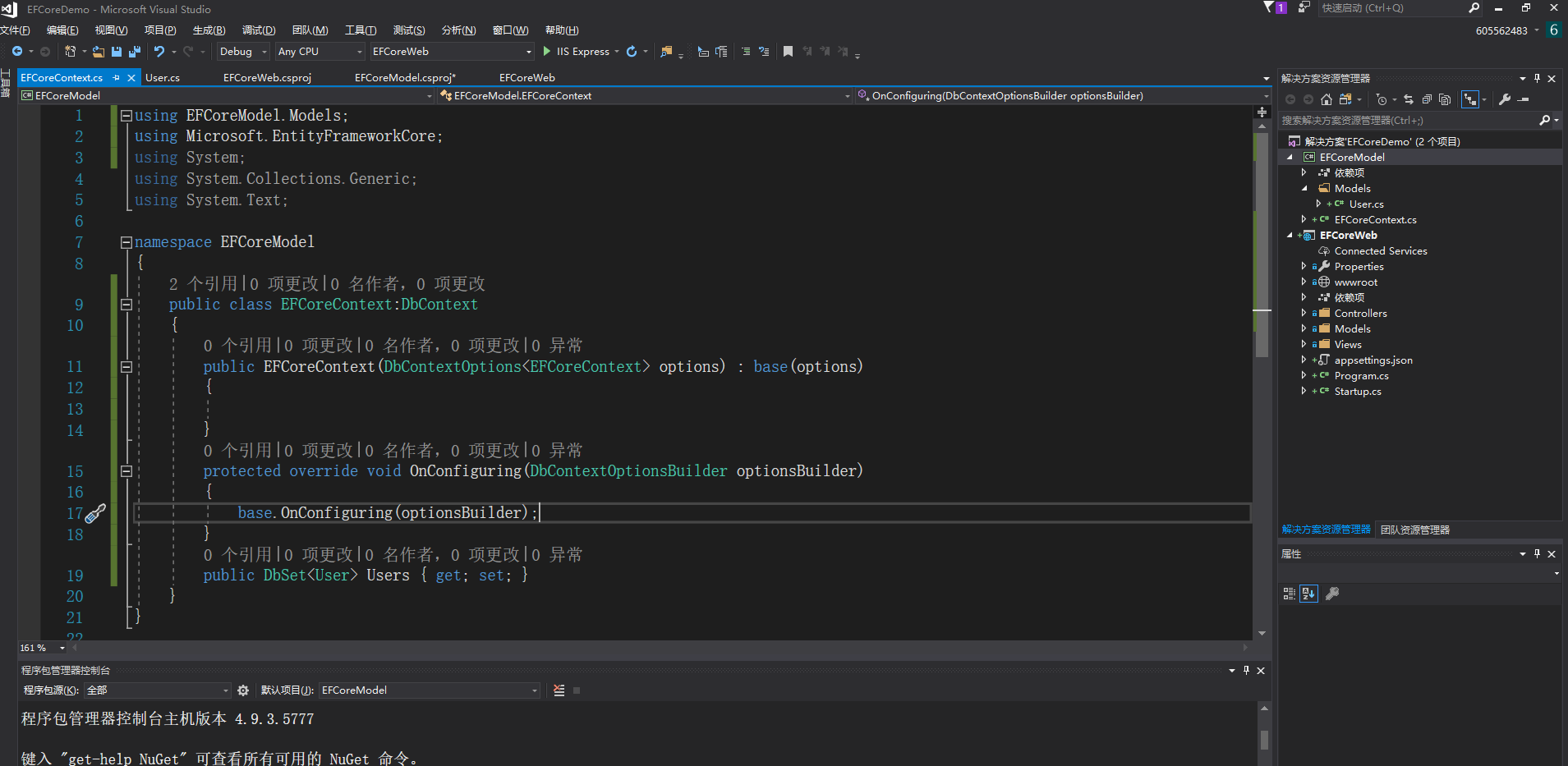 设置EFCoreWeb为启动项目,为EFCoreWeb项目添加引用项目EFCoreModel。