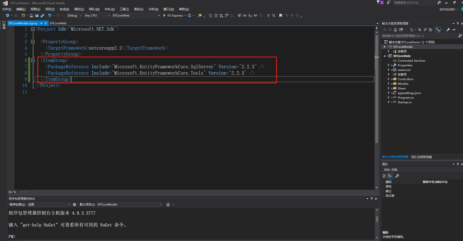 </ItemGroup>同样编辑EFCoreWeb.csproj文件,添加文件的引用。