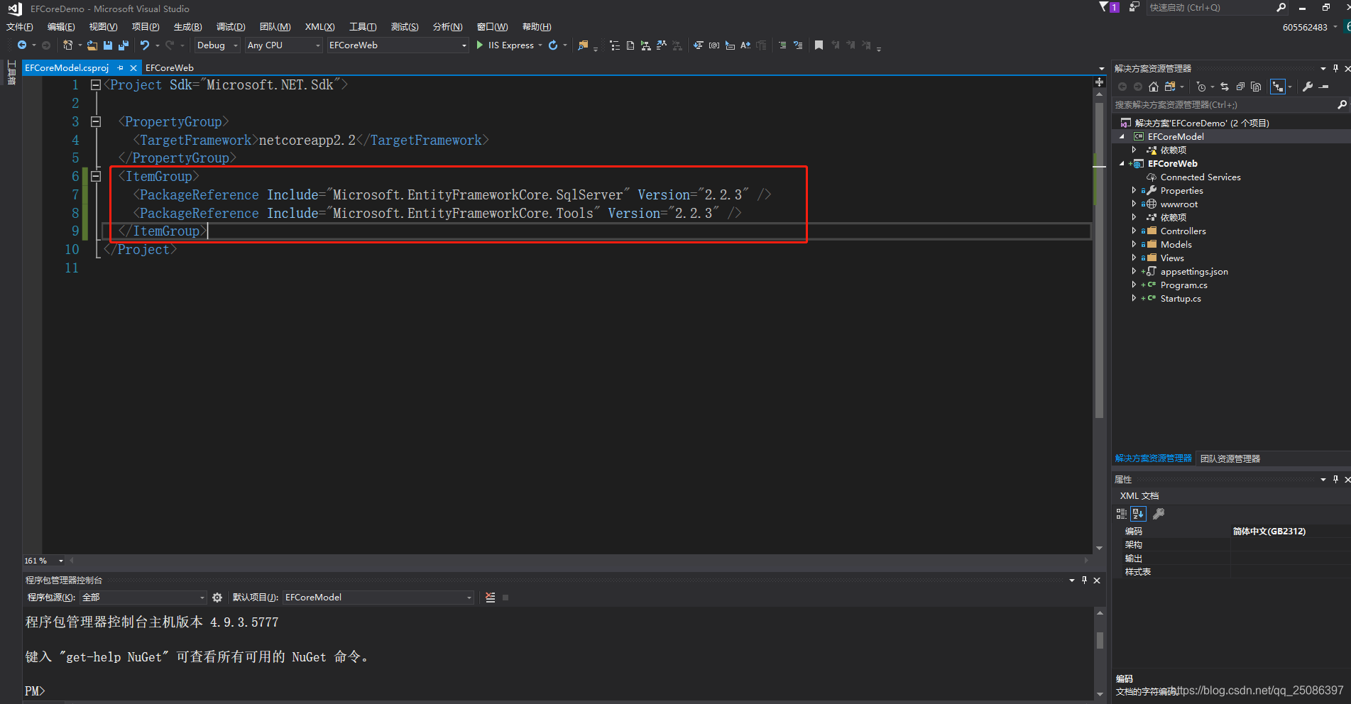 编辑EFCoreModel.csproj文件添加引用,此处用的是SQLserver数据库,其他数据库请稍作更改。