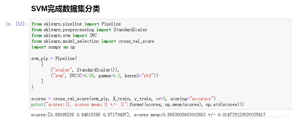 3、设置超参数C=0.05, gamme=0.1训练SVM模型