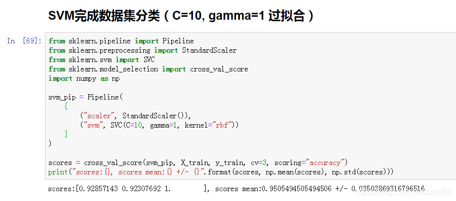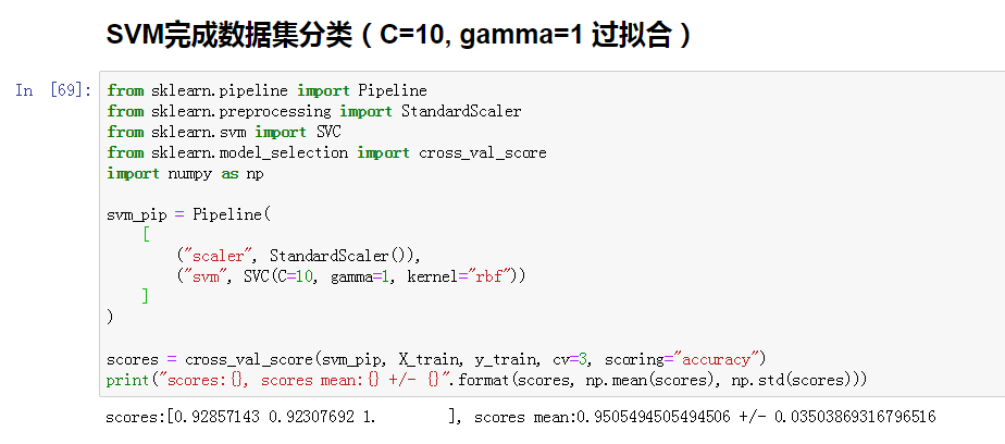5、增加超参数C=10, gamma=1,降低对模型的约束,训练SVM分类器