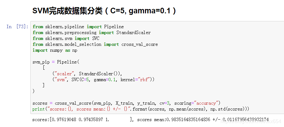 7、设置超参数C=5, gamma=0.1,增强对模型的约束,训练SVM分类器