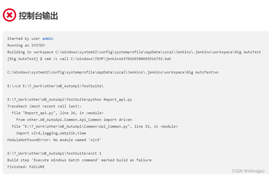 明明开发环境执行没问题,但上传到Jenkins自动执行就报错了;主要是因为环境安装模块的路径改变导致,解决方法继续往下看。。。