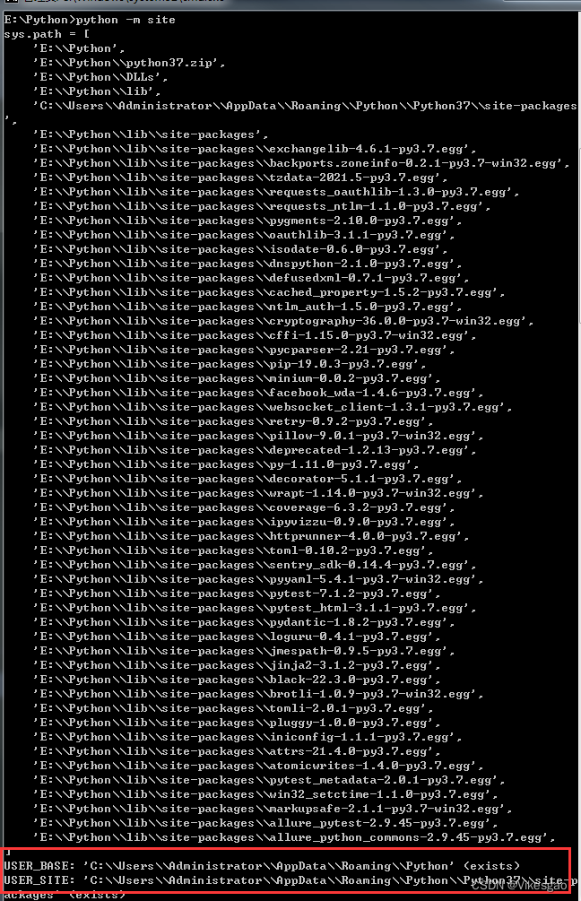 python -m site -help运行命令得到匹配文件路径