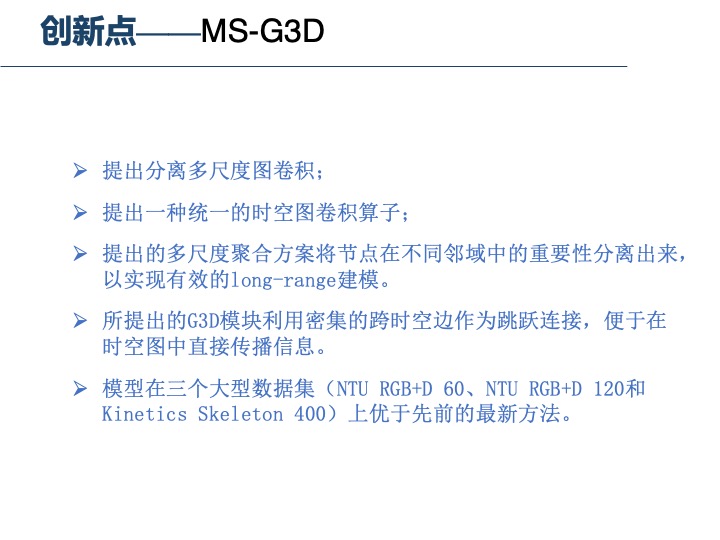 Disentangling and Unifying Graph Convolutions for Skeleton-Based Action Recognition Disentangling and Unifying Graph Convolutions for Skeleton-Based Action RecognitionCVPR 2020代码链接:https://github.com/kenziyuliu/ms-g3d 版权声明:本文为m0_37852937原创文章,遵循CC 4.0 BY-SA版权协议,转载请附上原文出处链接和本声明。原文链接:https://blog.csdn.net/m0_37852937/article/details/106565861