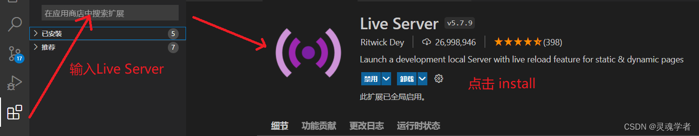 这里需要安装一个小工具,一个具有实时加载功能的小型服务器 live-server,这里用的是vscode 编译器;