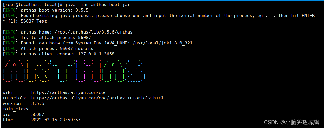 下载arthas-boot.jar,然后用java -jar的方式启动: