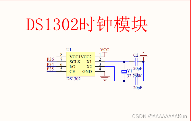 2,X1、X2:DS1302 外部晶振引脚,通常需外接 32.768K 晶振