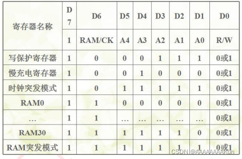 用于存放控制DS1302命令,可以控制该寄存器以控制选择读或写等操作。