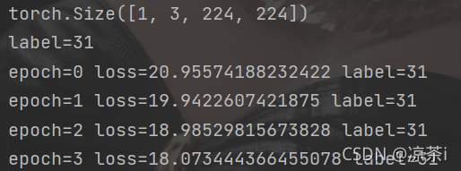 return perturbed_image5、简单进行训练就达到了目的,原本标签为31,最后预测的结果不为31,收敛于610,loss也收敛,这里是纯数据对比,没有可视化,可视化代码还在码