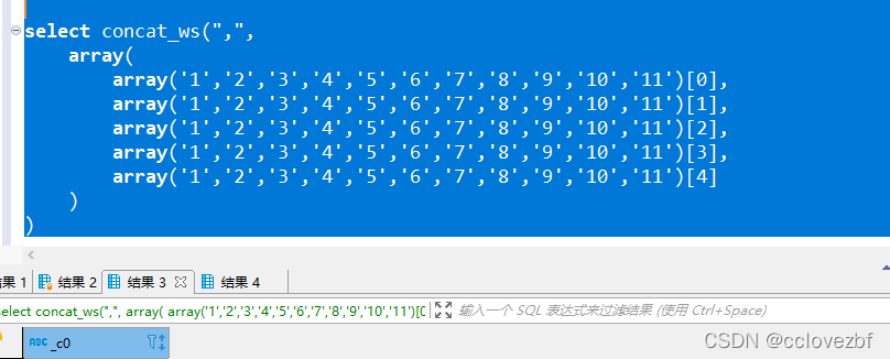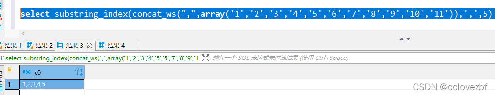 select substring_index(concat_ws(",",array('1','2','3','4','5','6','7','8','9','10','11')),',',5)3. row_number 版本