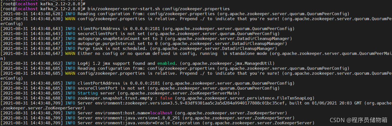本文主要是基于Kafka最新版kafka_2.12-2.8.0进行配置,这里ZooKeeper服务器的搭建主要是用kafka内置的ZooKeeper便捷脚本来快速简单地创建一个单节点ZooKeeper实例。