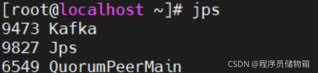测试Kafka服务是否启动,在重新开一个连接,输入jps查看当前运行进程