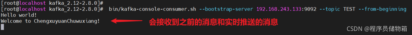 bin/kafka-console-consumer.sh --bootstrap-server 192.168.243.133:9092 --topic TEST --from-beginning