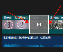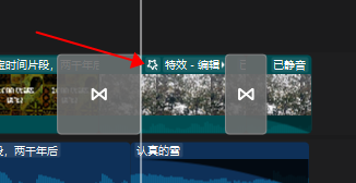 转场需加在两段视频中间用于衔接两段视频,如果所示,箭头所指的地方转场边缘部分,当鼠标移到这个地方可以拉长转场的时间或者缩短转场的时间。
