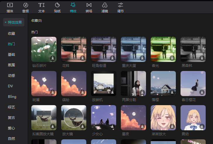 这边可以调整特效,比如特效的时长,覆盖视频的长度。