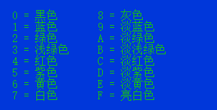 - color +两位数 命令:更改dos命令窗口背景颜色和字体颜色,数字规则如下图:
