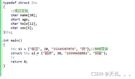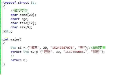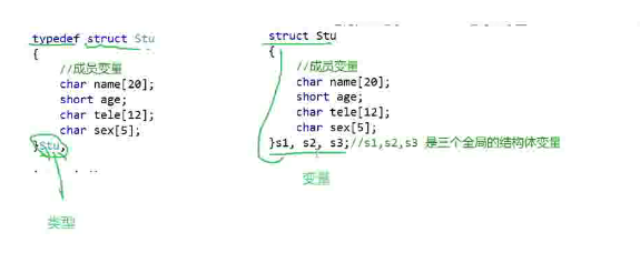 struct stu//struct-结构体关键字 stu-结构体标签 struct stu-结构体类型