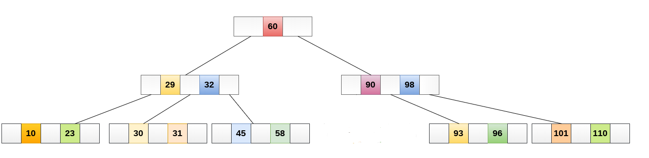 如下图(其实B+树上二叉搜索树的扩展,二叉搜索树是每次一分为二,B树是每次一分为多)
