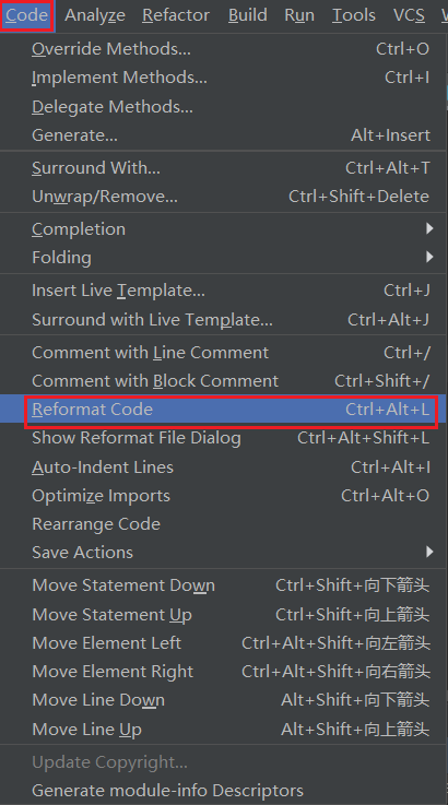 Code -> Reformat Code 手动格式化