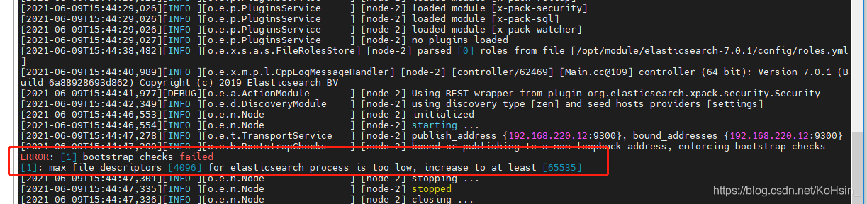 ]# sudo chown -R kohsin elasticsearch-7.0.1这时候会遇到一个新的错误