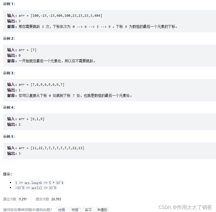 给你一个整数数组 arr ,你一开始在数组的第一个元素处(下标为 0)。