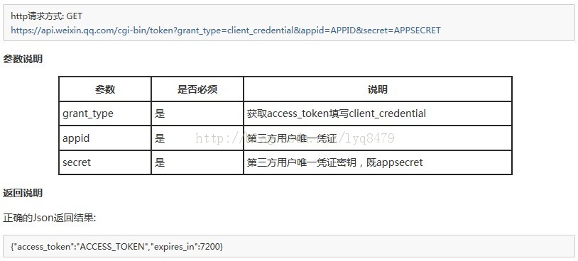 图中已经表达的很清楚了,获取access_token是通过GET方式访问如下链接: