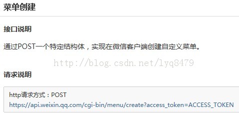 其实就是向地址https://api.weixin.qq.com/cgi-bin/menu/create?access_token=ACCESS_TOKEN以POST方式提交一个JSON格式的菜单字符串。